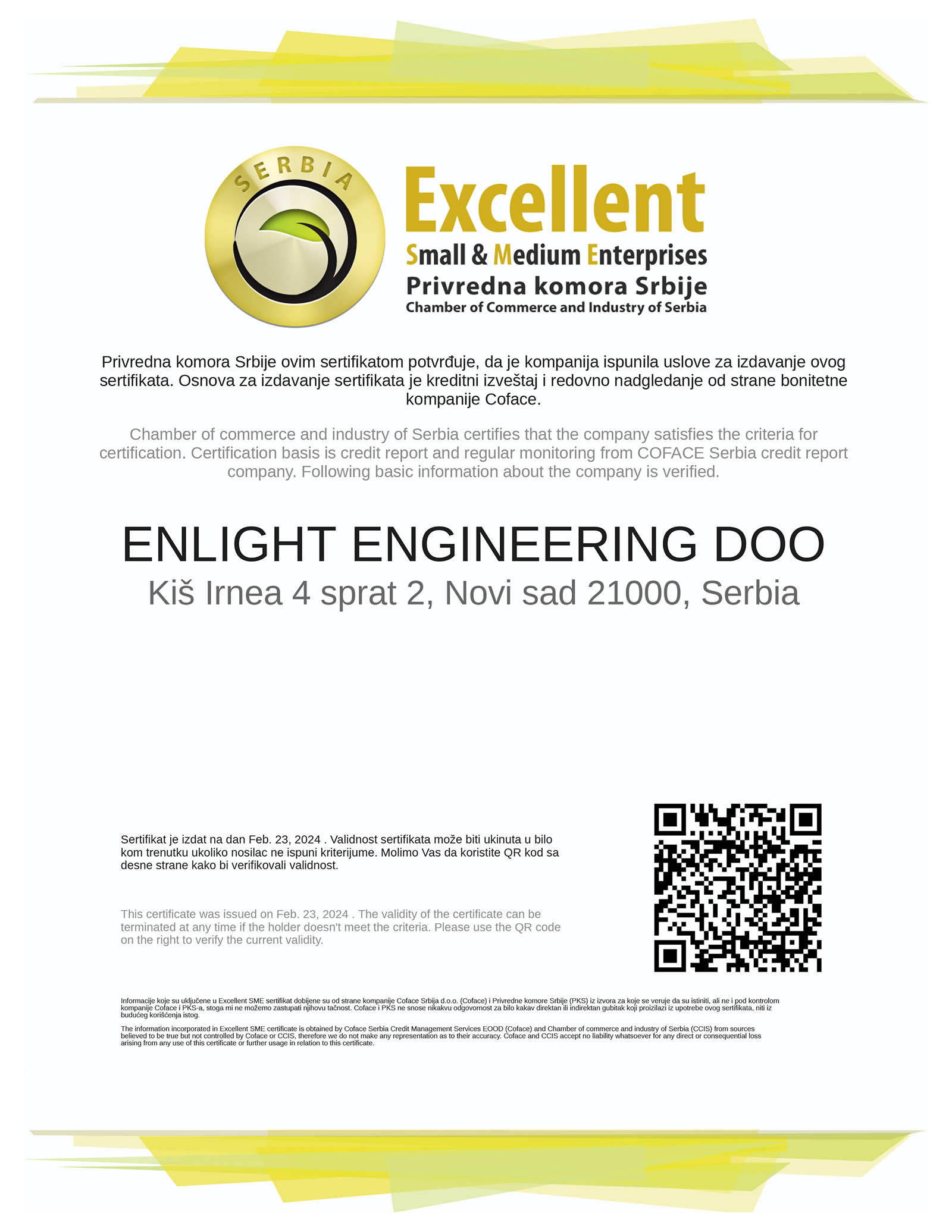 Enlight Engineering, driven by the ultimate goal of ensuring quality and security for clients, holds multiple certifications in technological, system management, and financial domains.